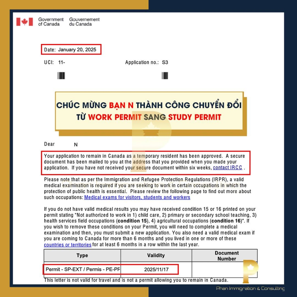 - Chương trình: Chuyển đổi từ Work Permit sang Study Permit